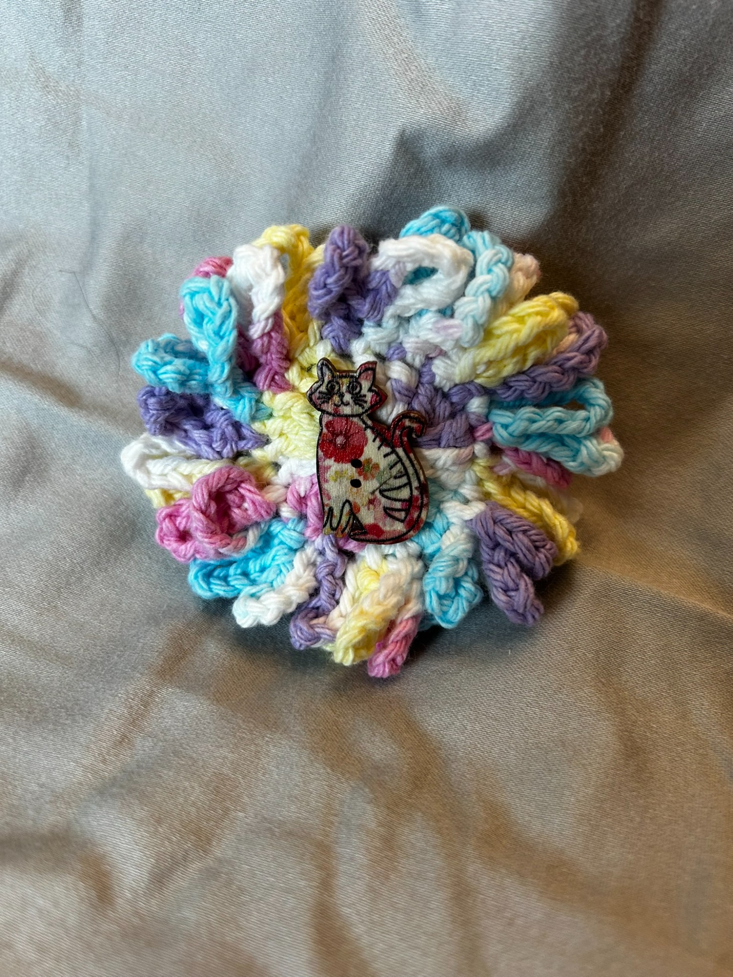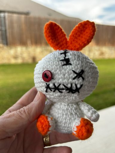 Skills: Slip knot, chaining, frogging, single crochet, counting stitches, turning rows, weaving in edges